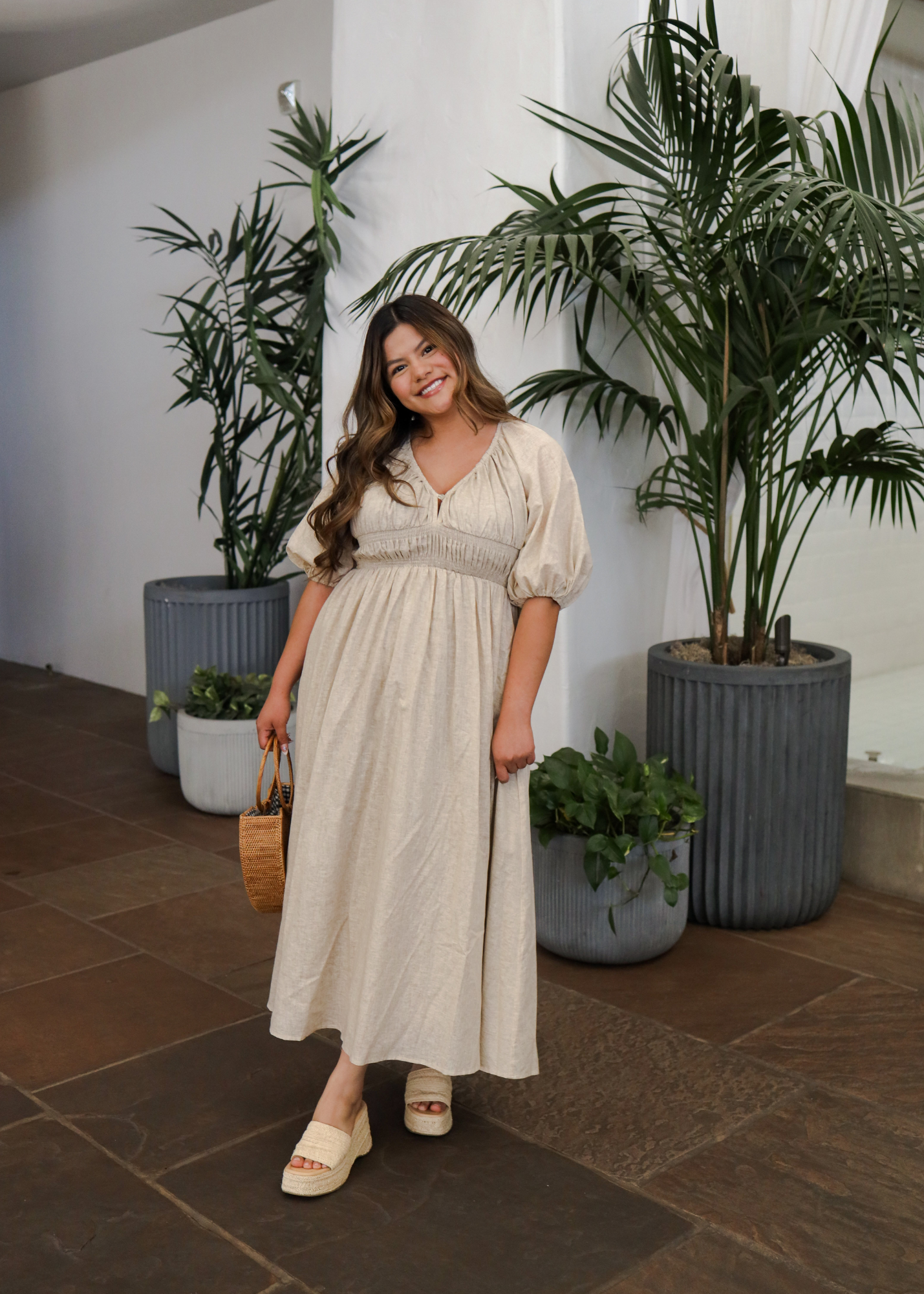 Your new favorite summer dress is here! The relaxed fit drapes beautifully with the romantic puff sleeves that add a touch of whimsy. Crafted from breathable linen and fully lined for comfort, the elastic waist creates a flattering silhouette that moves with you. Perfect for beachside strolls or sunset dinners!