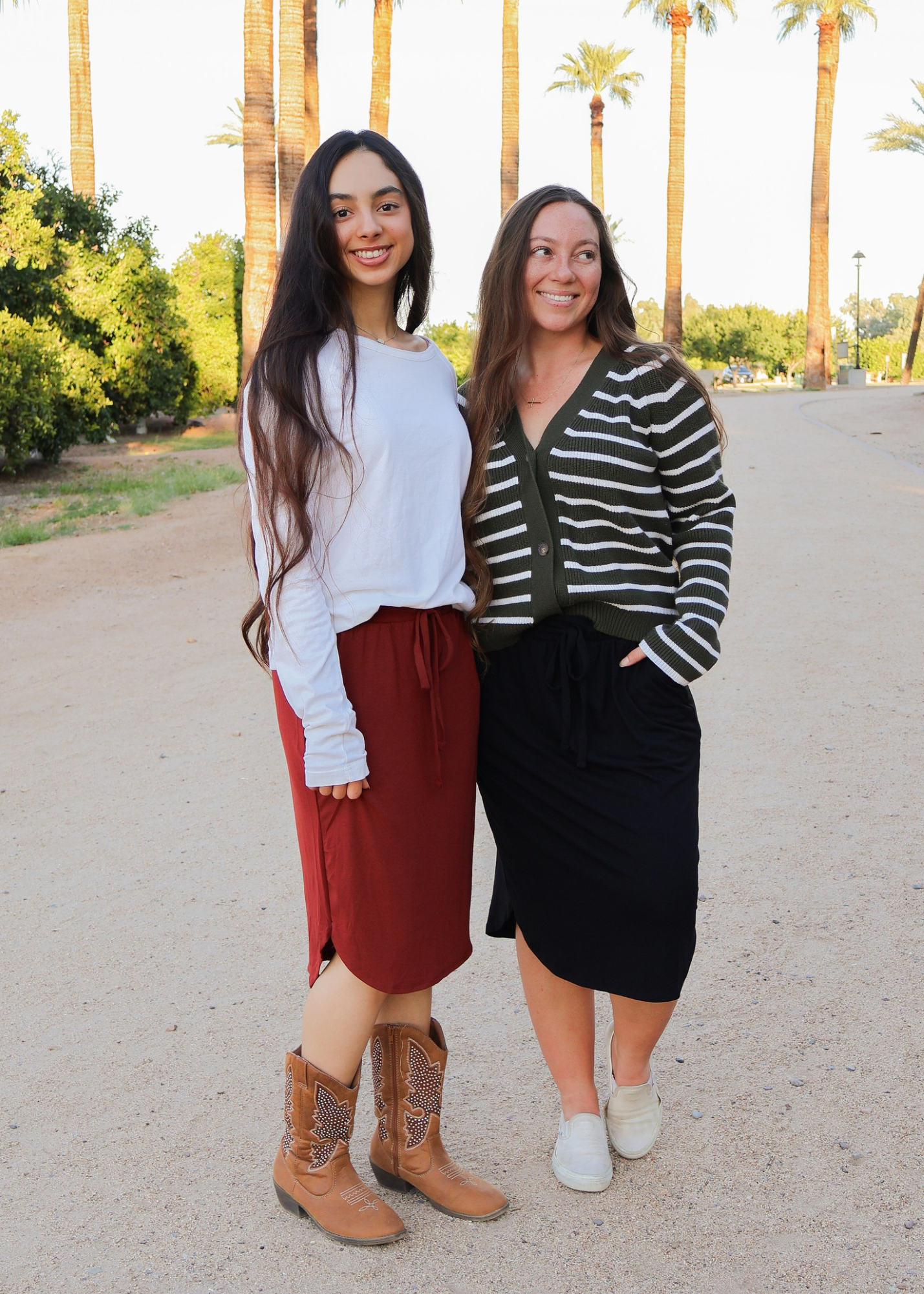Add some color and comfort to your closet with this versatile, comfy knit skirt! It’s so buttery soft that you will want to buy one in every color. Perfect for those lounge days, errand runs, beach days, and so much more! These Skirts will keep you cute, cozy and comfortable all while giving an effortless style. Pair with any of our tops for an effortless look.